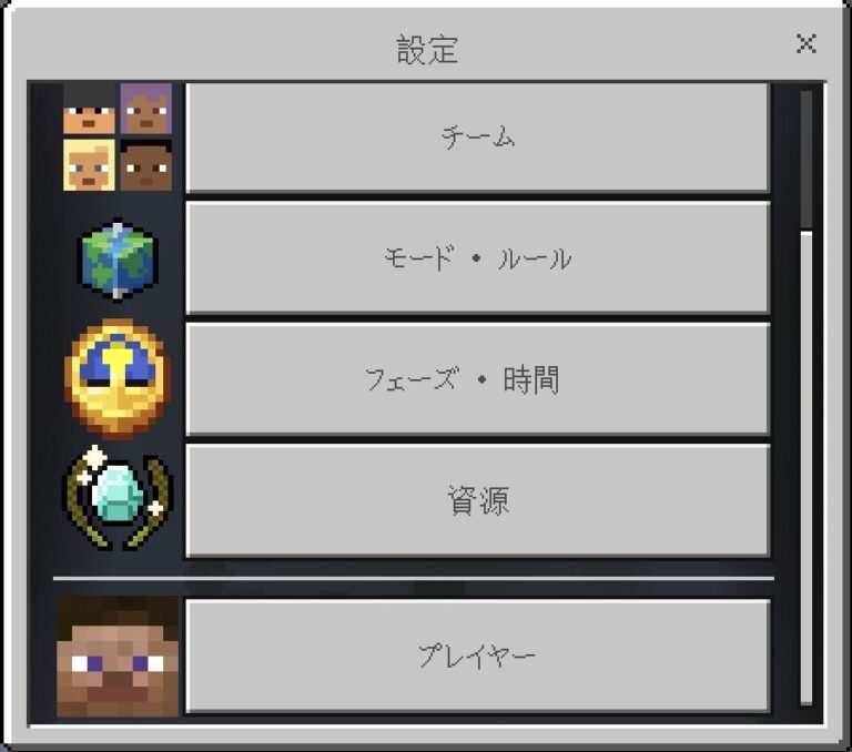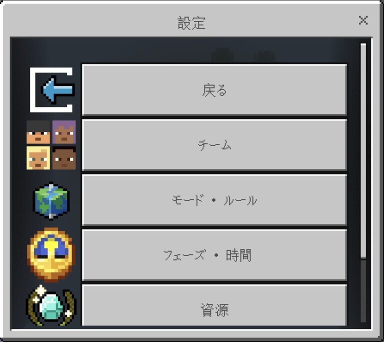 資源…復活時間を変更します。一部資源は有効無効化できます。