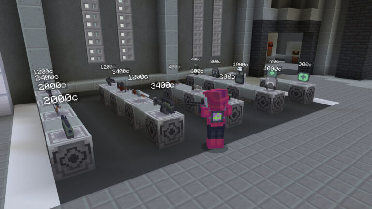このワールドはフィールドに降り立ち、アイテムを持ち帰ってお金を稼ぐ”ルートシューター”をミニゲームに落とし込んだものです。