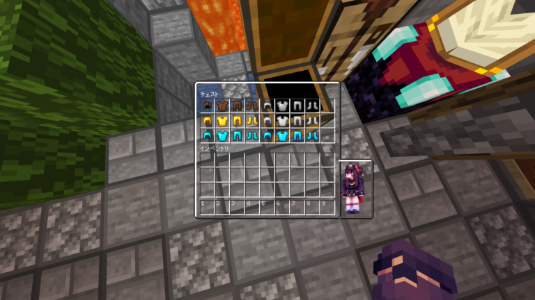 エンチャントグリントをわかりやすくする(この画像ではダイヤ装備になっているのでわかりにくいです)