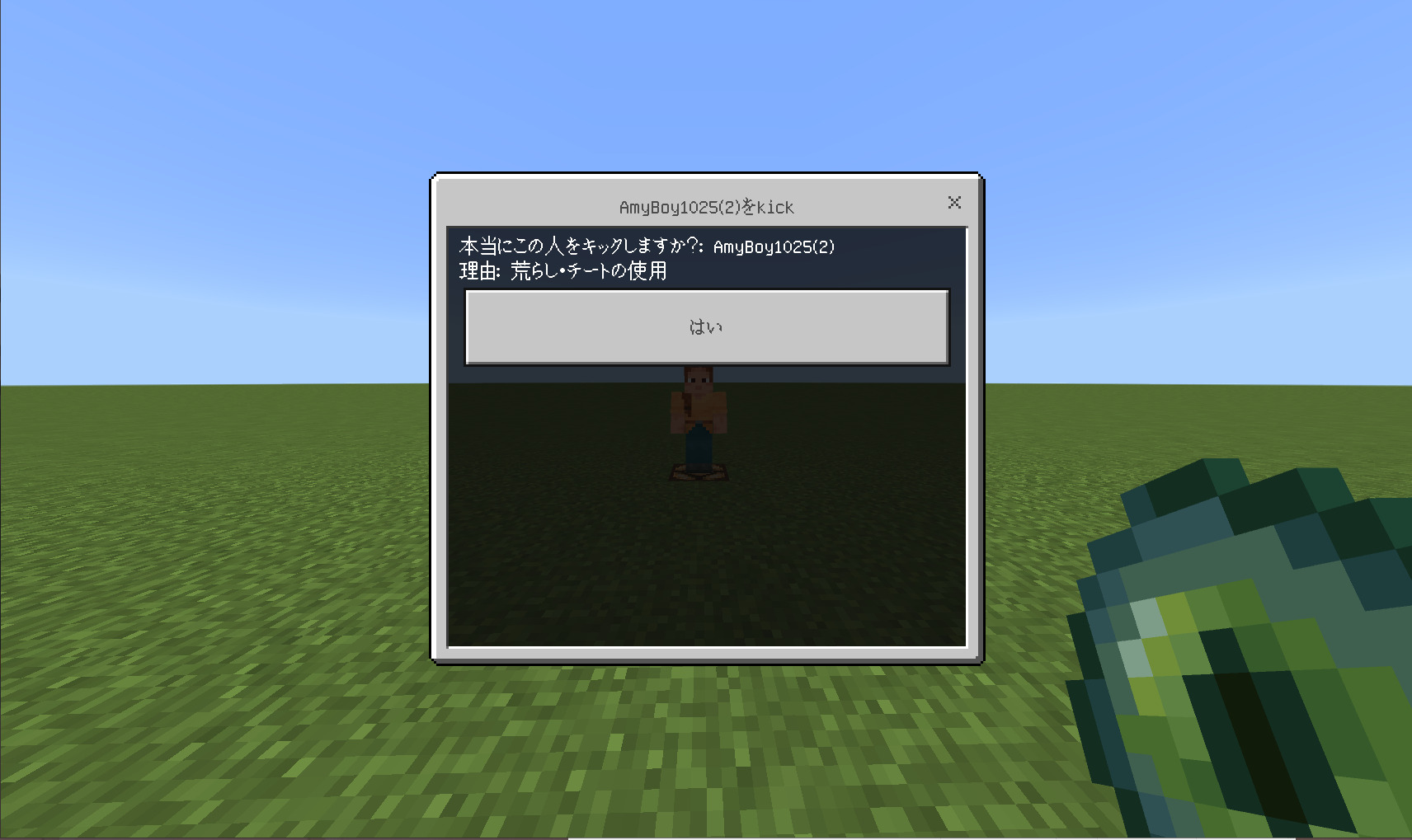 ・送信ボタンを押してください。そうすると、このような最終確認画面へと飛びます。・理由や蹴るプレイヤーを間違っていないかを再確認したうえで、「はい」を押してください。