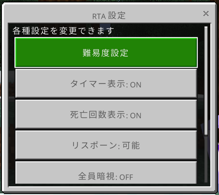 ※開始した後にワールドを抜けるとRTA記録は保持されますが、死亡回数の表示はされなくなってしまうのでご注意下さい。