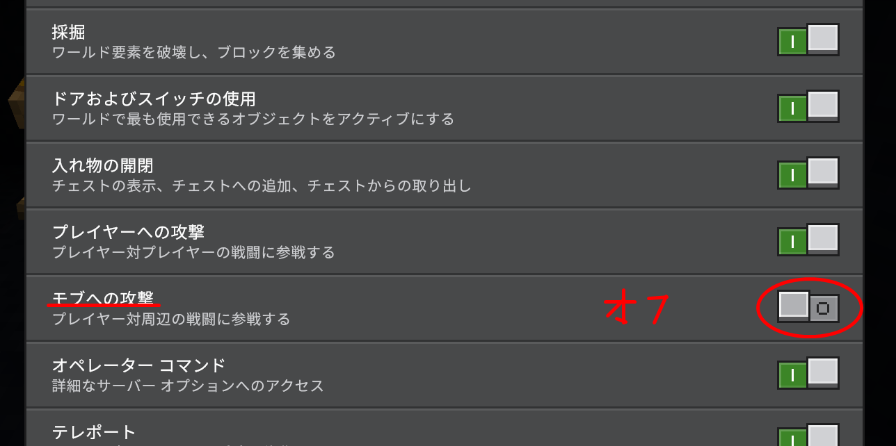 ↑のように、「モブへの攻撃」をオフに!、「座標の表示」もオフに!