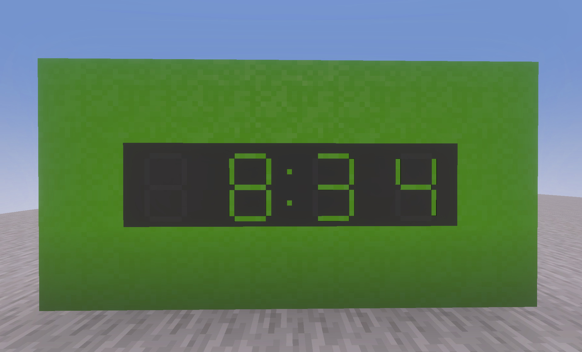このグループの4つのブロックは、左から順にそれぞれ “時間の十の位、一の位、分の十の位、一の位” を表示するブロックで単体でも動きます。