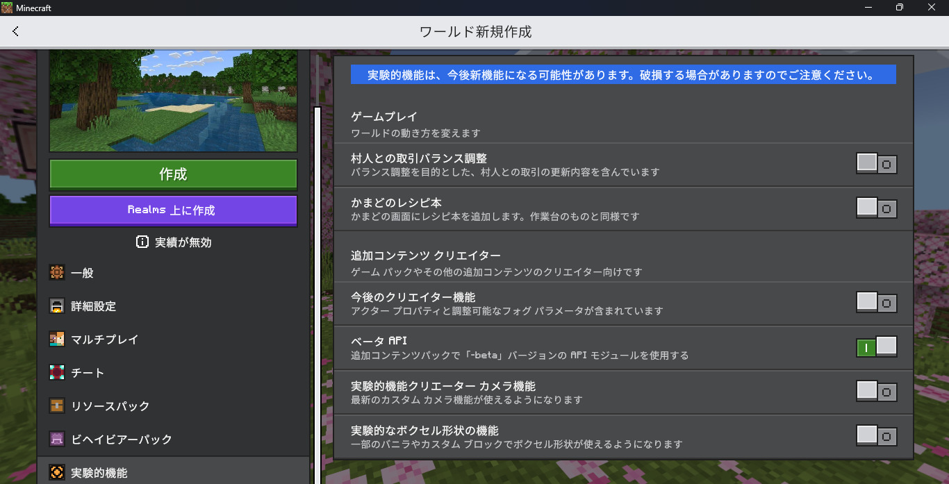 Beta APIがONでないとAddonが動作しません。