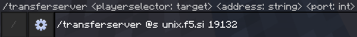 「/transferserver 転送したいプレイヤーの名前 転送先のサーバーアドレス サーバーのポート」と書く。