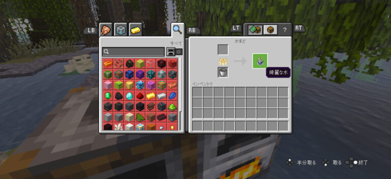 かまどまたは燻製器で水入り瓶を焼くことで綺麗な水が生成できます。