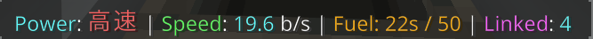 運転中は、現在の速度、燃料の残量、連結している車両の数が画面下部に表示されます。