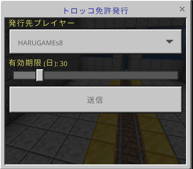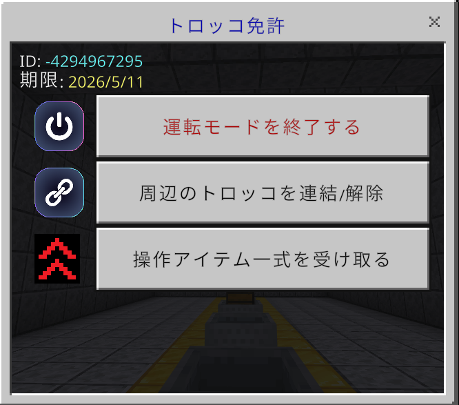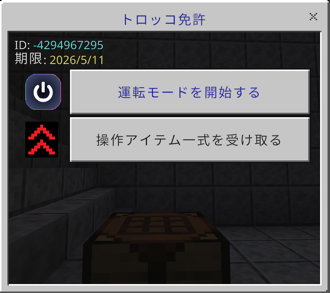 2. トロッコ免許からUIを開き、操作に必要なアイテムを取得します