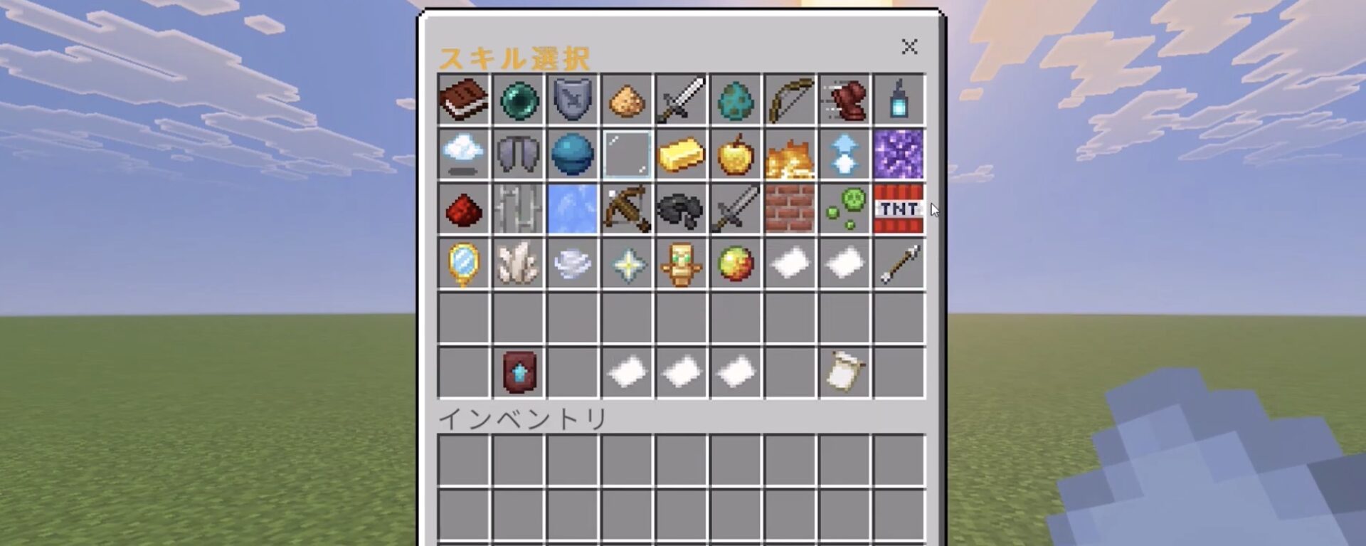 まず、ワールドに入ると紙とエンドクリスタルが渡されます。次に異能力を選択する場合は紙を右クリックします。するとチェストのUIが出てくるので、そこで異能力を選択してください!、その後エンドクリスタルでやりたいゲームを選択します。選択したものを押すとゲームが開始されます!