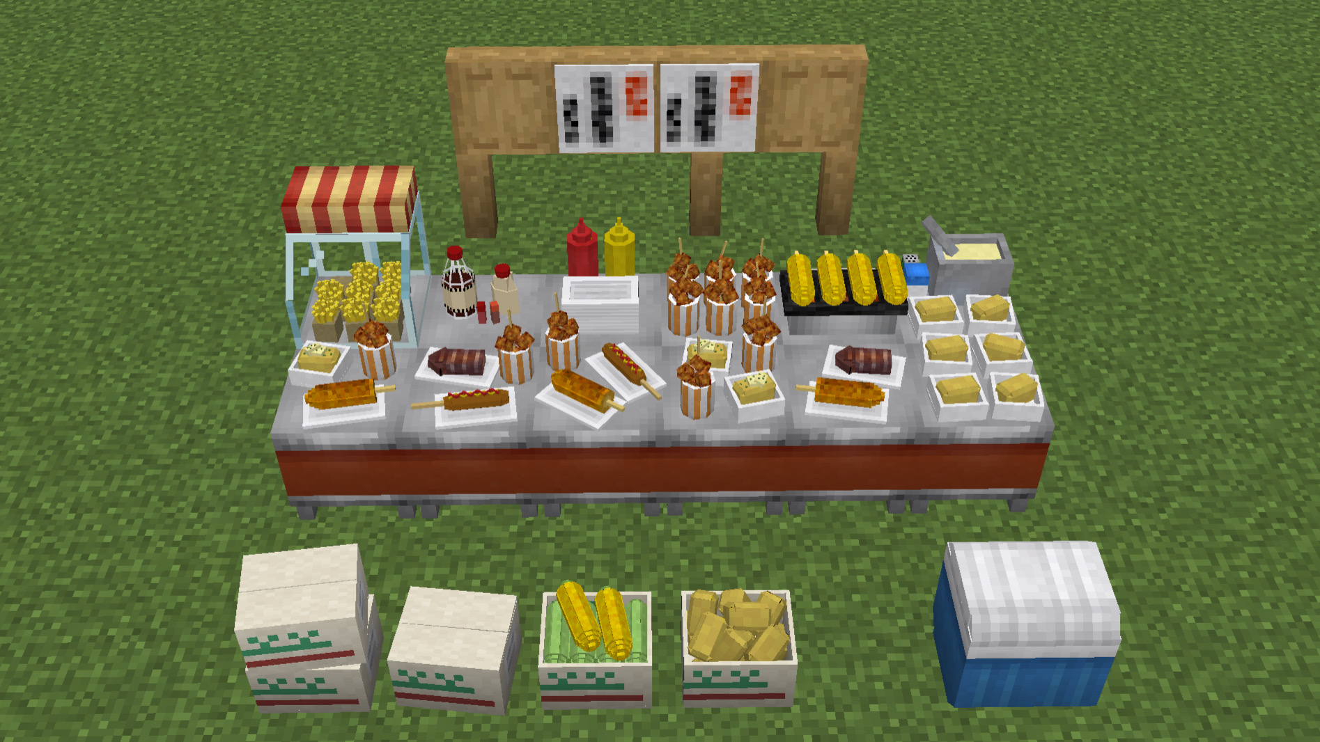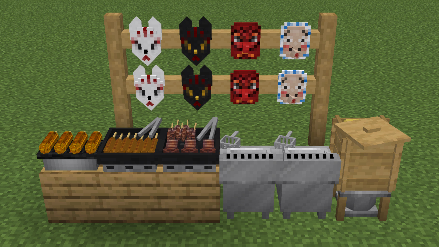 アイテムタブにある[PPJF+]屋台ブロックというグループのアイテムは屋台の食べ物やアイテムを出せるブロックとなっており、インタラクトすることで各種アイテムを入手できます。