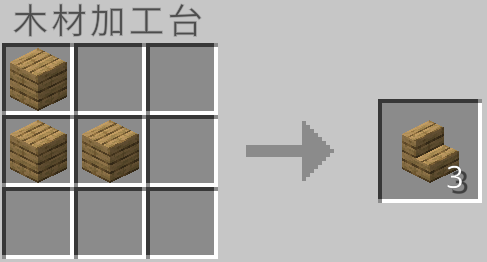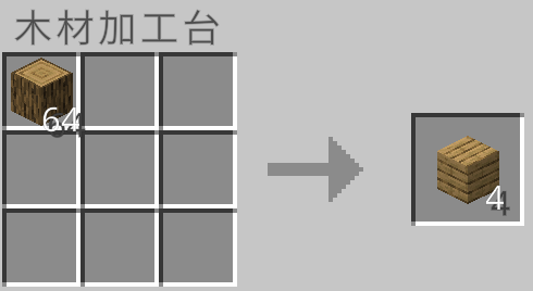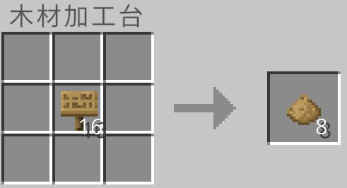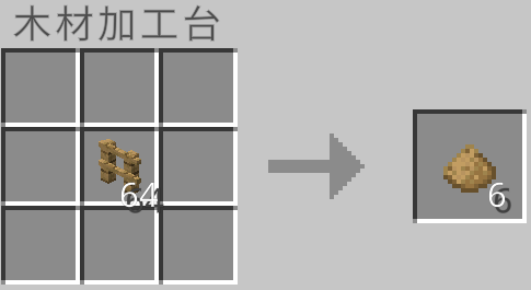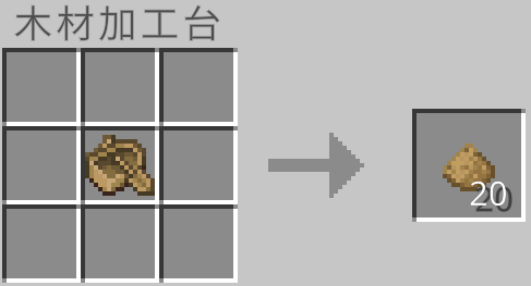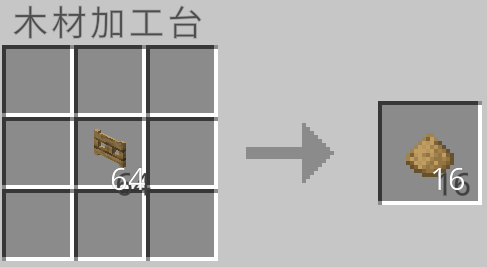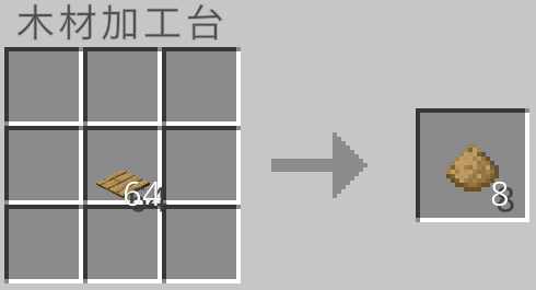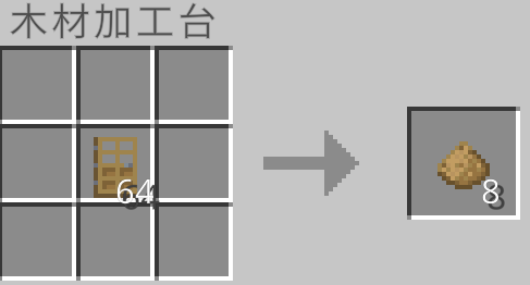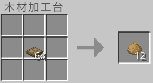 クラフト時に使用した板材の種類に応じて木片を作ることができます。しかし、木片は元の約半分の量が手に入ります。