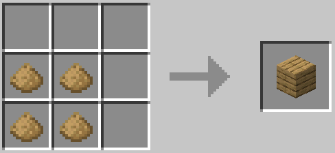 木材から作られたものを加工すると作成でき、同じ種類の木片を4つ組み合わせることで板材に戻すことができます。