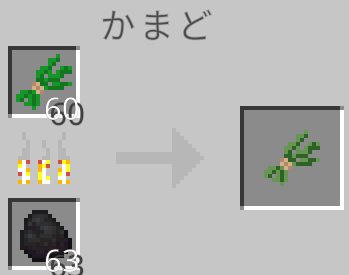 薬草は食べることによって体力を回復することができます(満腹度は回復しないけど…)。そして、かまどで火を通すことによって食べる速度をより早くすることができます。