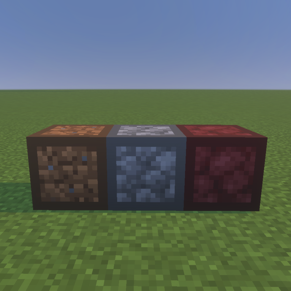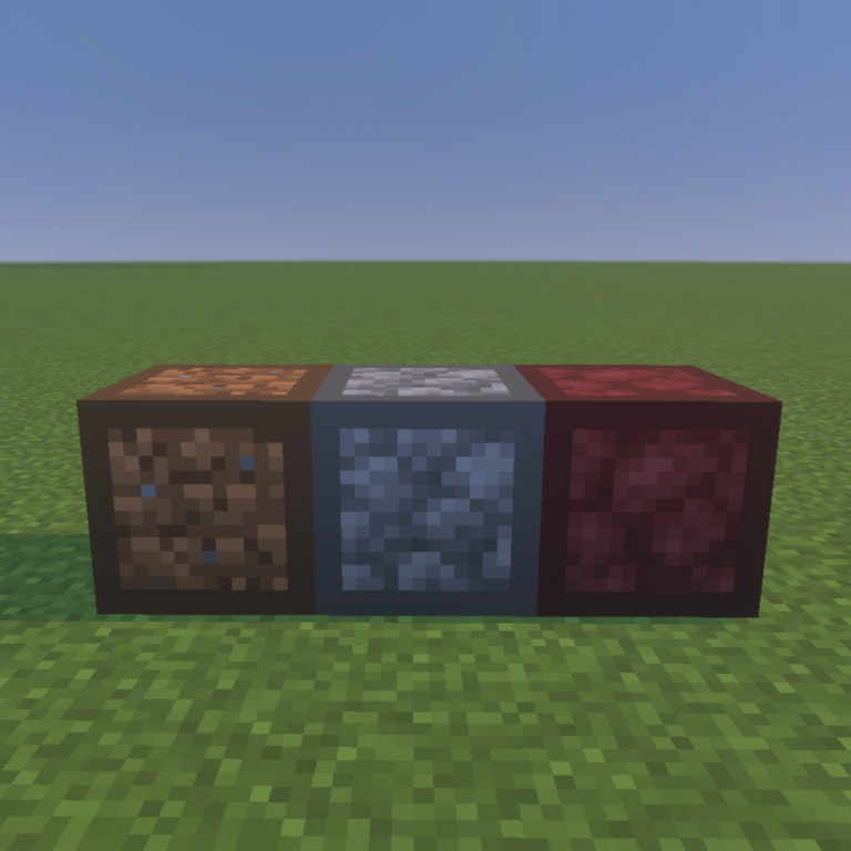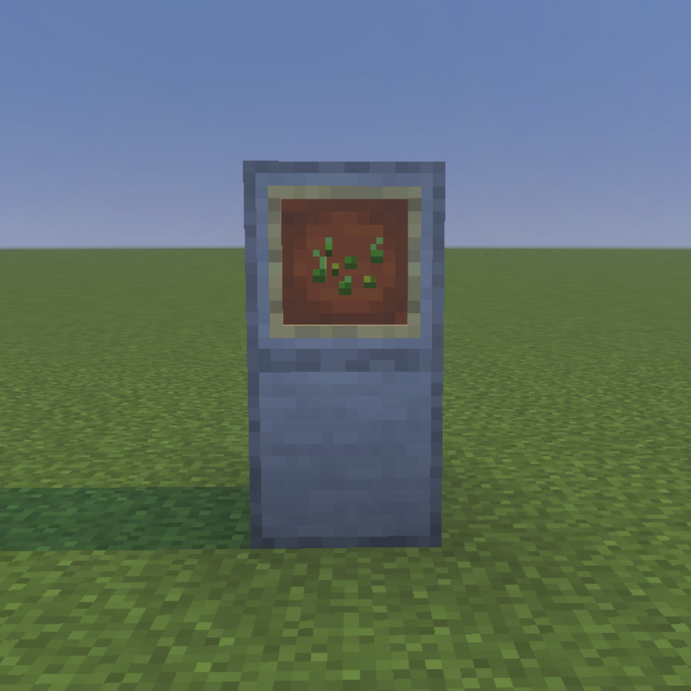 細かい土の部分に他の細かい系のアイテムを配置することで対応したブロックやアイテムを作成可能です。