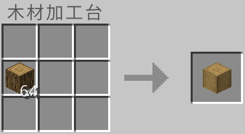 木材系のブロックを加工することができます。さらに、木片に加工するときに通常の2倍の量を作成可能です。