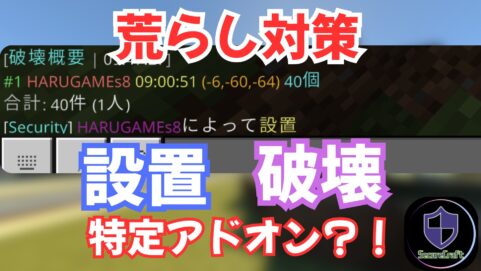 ブログ【統合版】荒らし対策アドオン「SecurityCraft」のご紹介と使い方 – 設置破壊ログ/Xray検知3,039 0 8 2025.05.15 2025.10.18HARUAddons 36ブログ