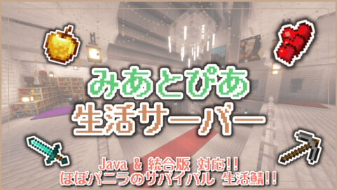 【Java&統合版・サバイバル!!】みあとぴあ生活鯖!! 【ほぼバニラのシンプル系サバイバル!!】